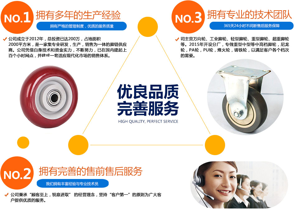 主要分為:塑料腳輪、尼龍腳輪、鋼鐵腳輪、耐高溫酚醛樹(shù)脂腳輪、橡版膠腳輪、PVC腳輪、TPE靜音腳輪等。另外除了主要的腳輪材質(zhì)之外,腳輪材質(zhì)還有鑄鐵鑄鋼、丁腈橡膠腳輪(NBR)、丁腈膠、天然橡膠腳輪、硅氟橡膠腳輪、氯丁橡膠腳輪、丁基橡膠腳輪、...